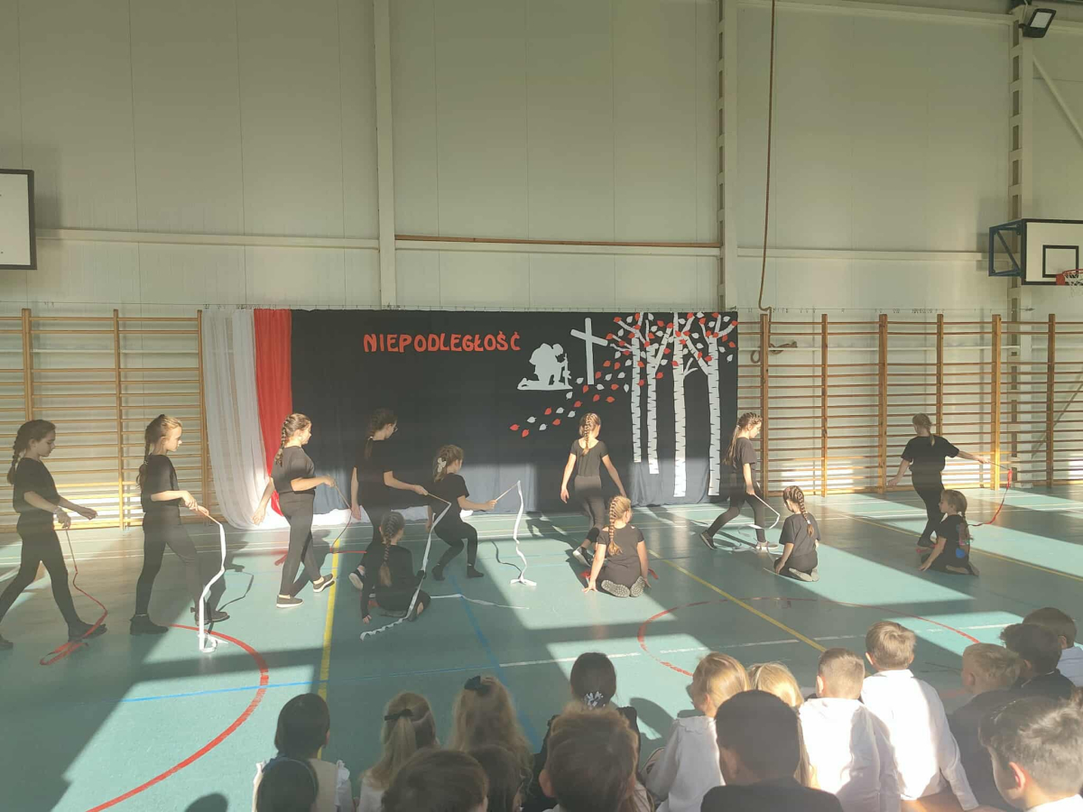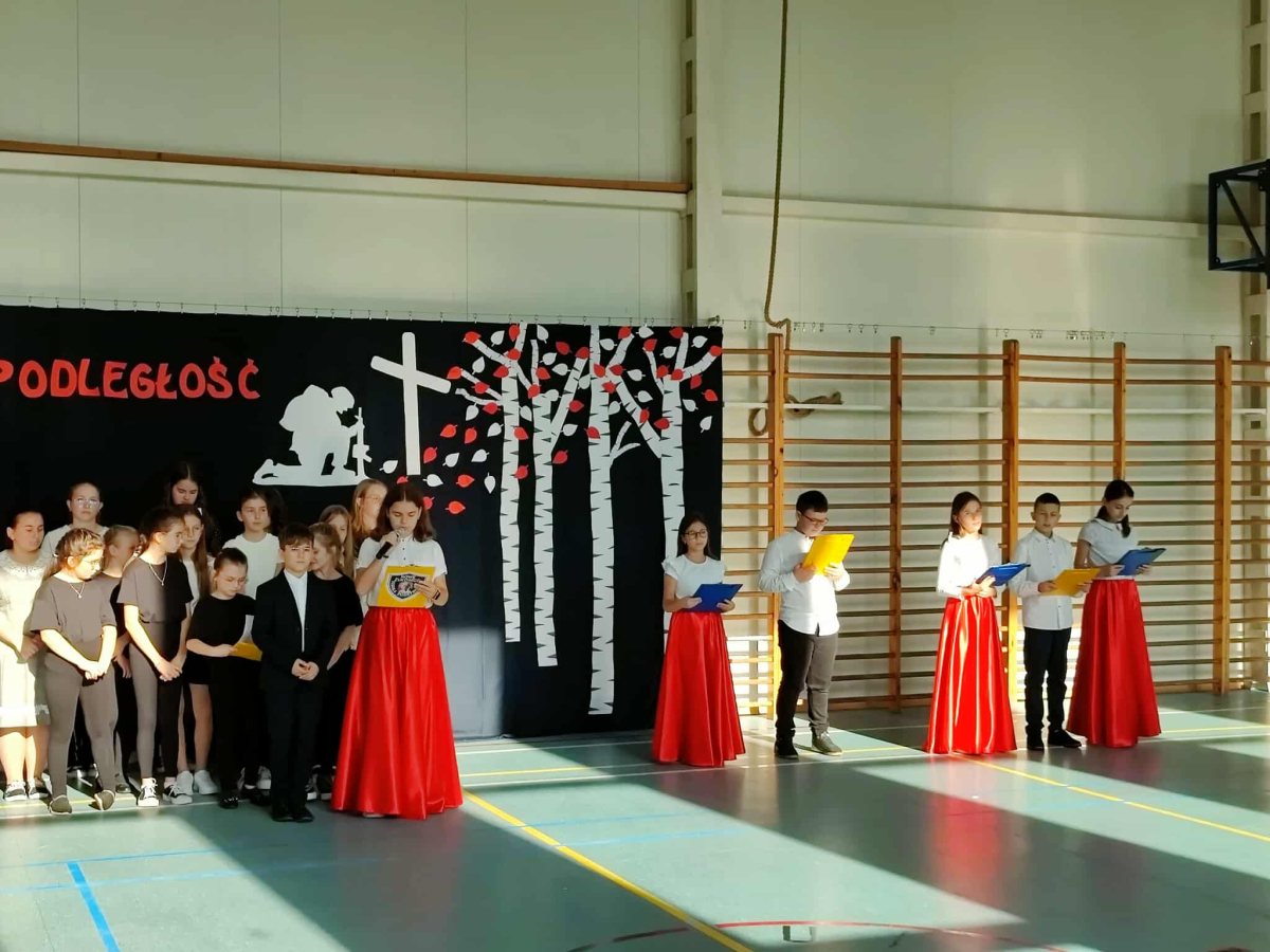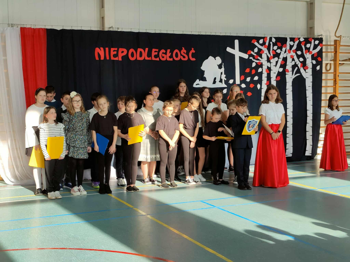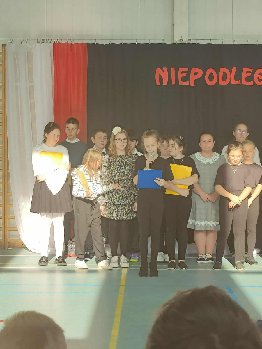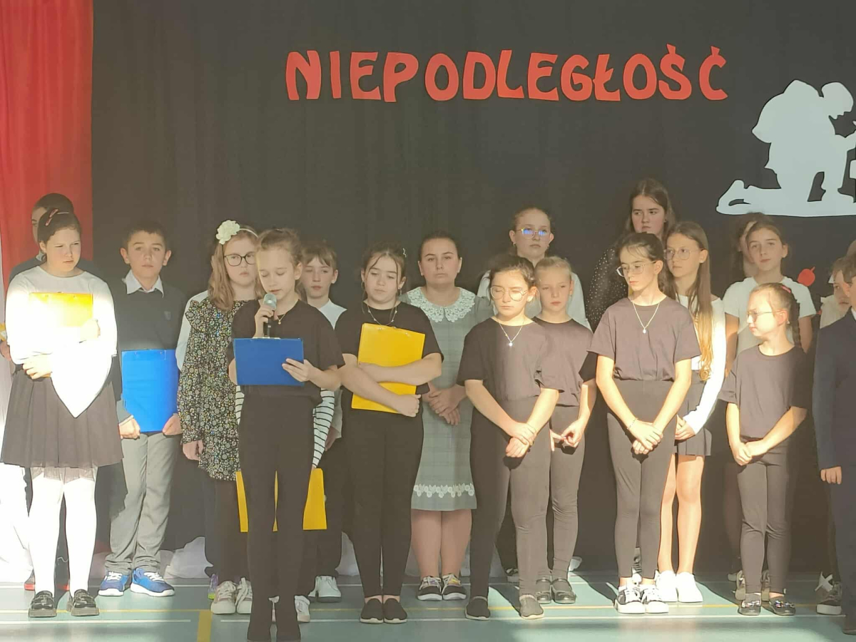 Podczas wydarzenia uczniowie klasy szóstej zaprezentowali montaż słowno-muzyczny, przypominając najważniejsze momenty z historii Polski oraz znaczenie wolności i patriotyzmu w życiu każdego z nas.