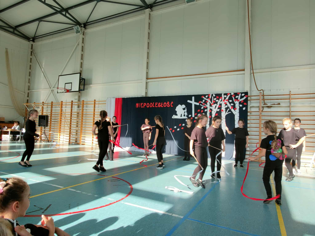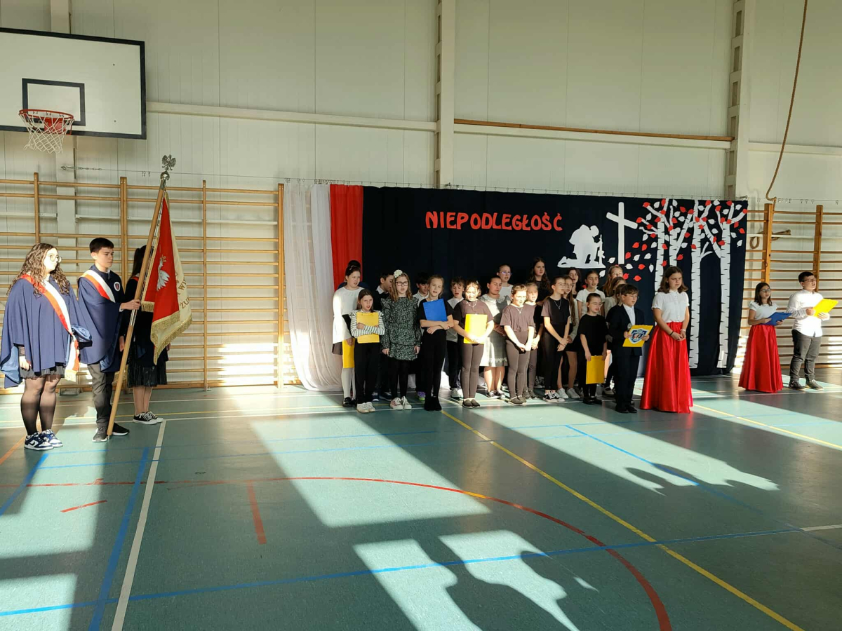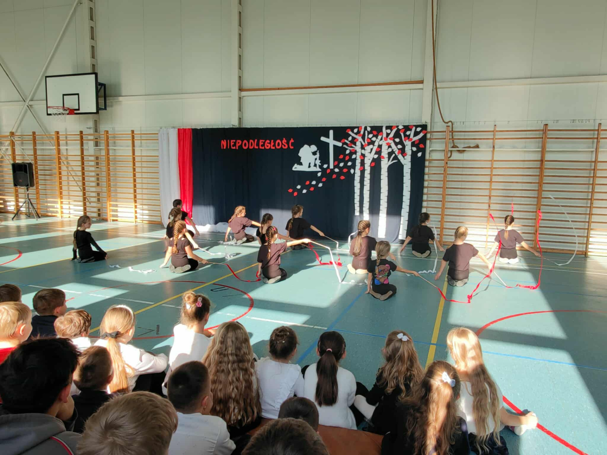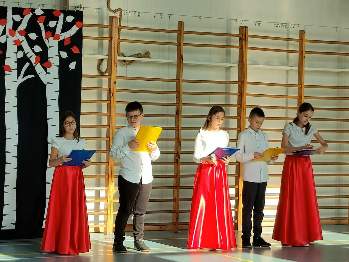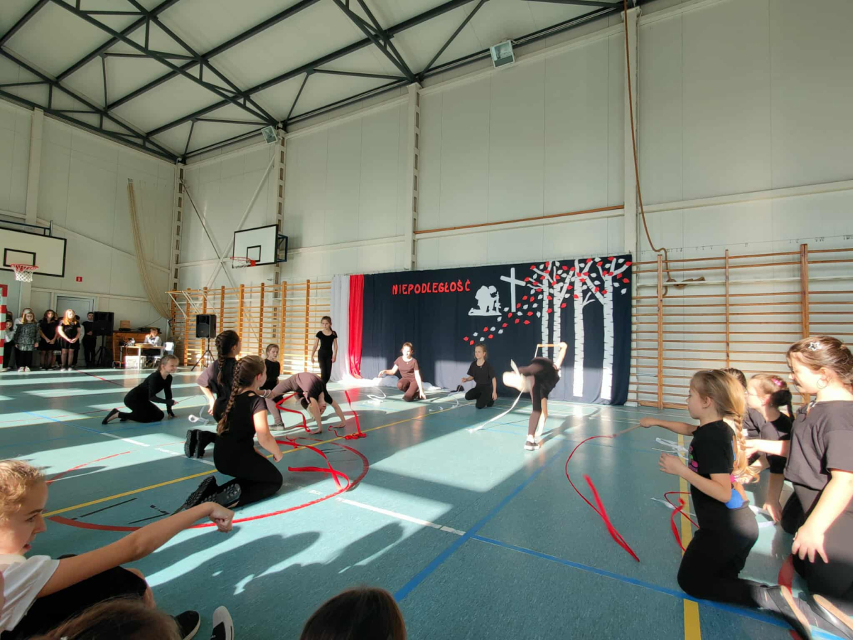 Podczas wydarzenia uczniowie klasy szóstej zaprezentowali montaż słowno-muzyczny, przypominając najważniejsze momenty z historii Polski oraz znaczenie wolności i patriotyzmu w życiu każdego z nas.