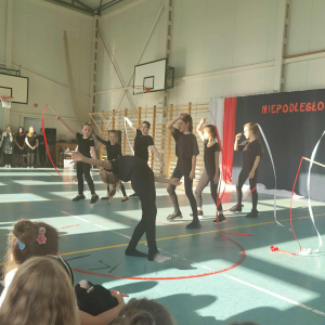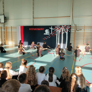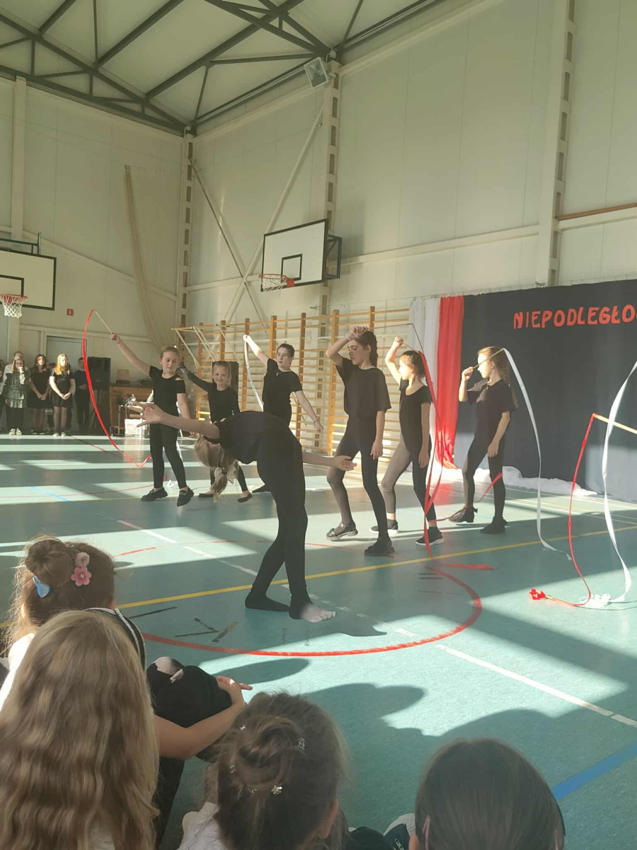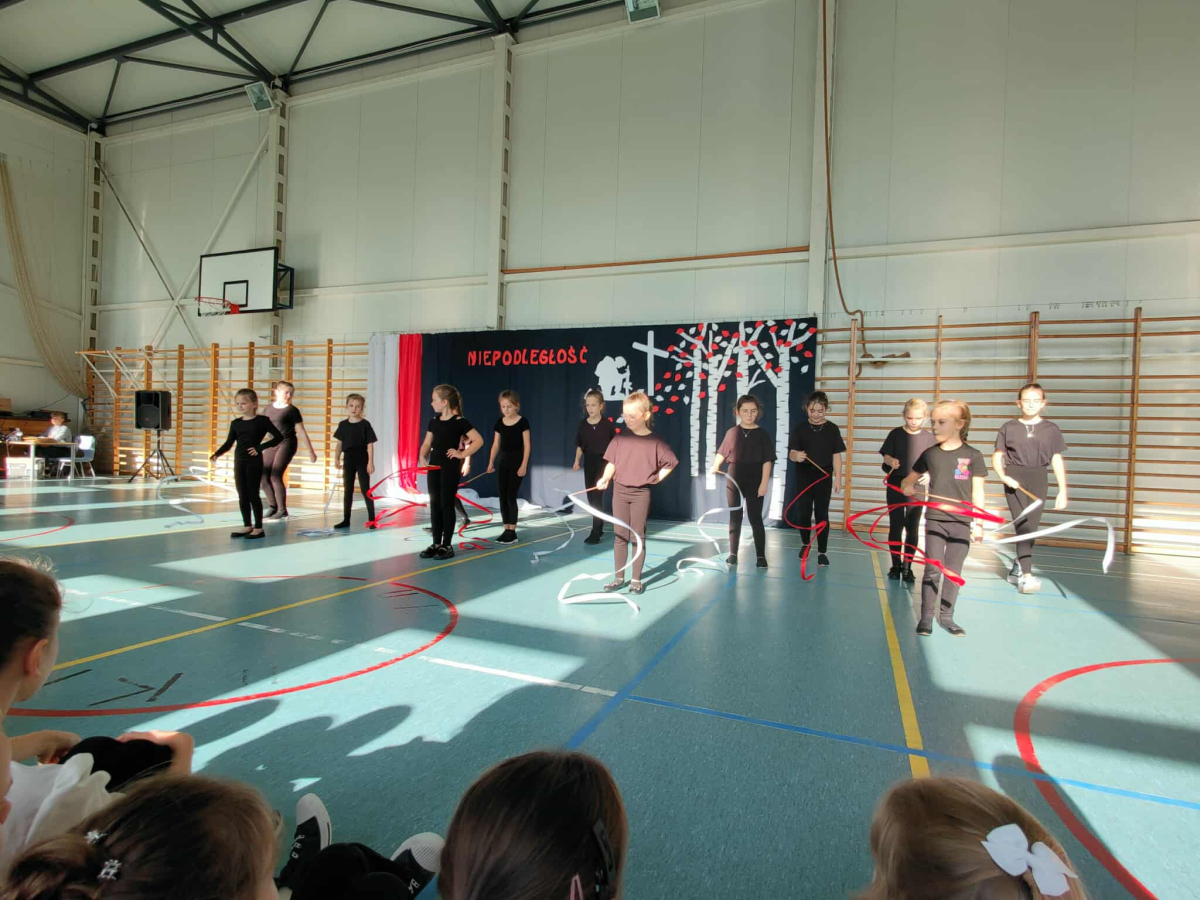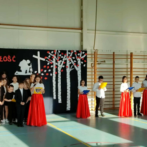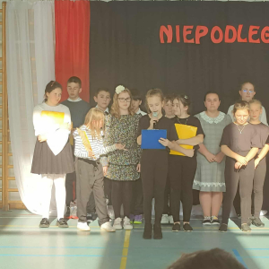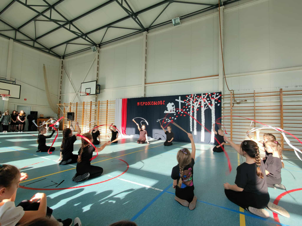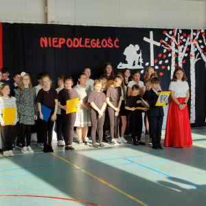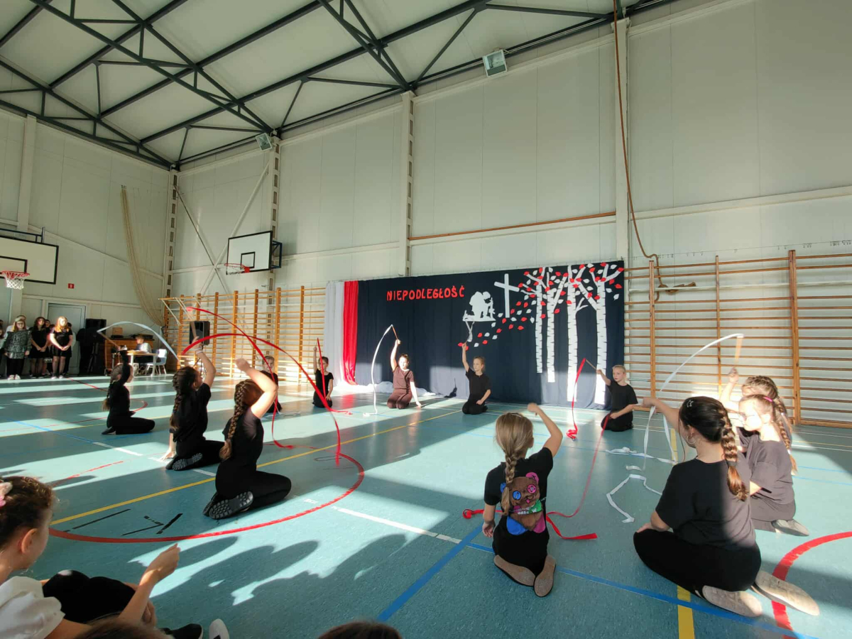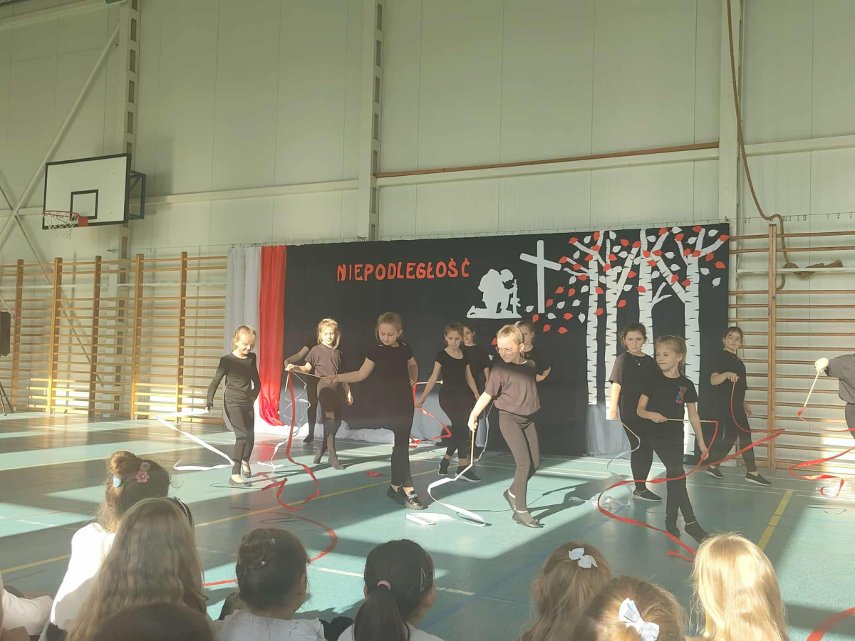 Podczas wydarzenia uczniowie klasy szóstej zaprezentowali montaż słowno-muzyczny, przypominając najważniejsze momenty z historii Polski oraz znaczenie wolności i patriotyzmu w życiu każdego z nas.