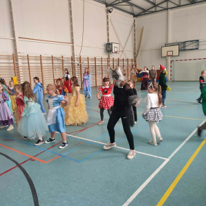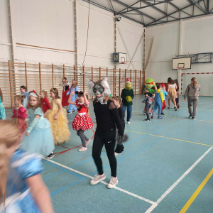 13 listopada w czwartek nasza szkoła zamieniła się w magiczne miejsce- świętowaliśmy Dzień Postaci z Bajek. Szkolne korytarze pełne były baśniowych postaci, gwaru i śmiechu. Na zakończenie tego wyjątkowego dnia odbyła się taneczna przerwa, w której ochoczo uczestniczyła młodzież z młodszych klas.