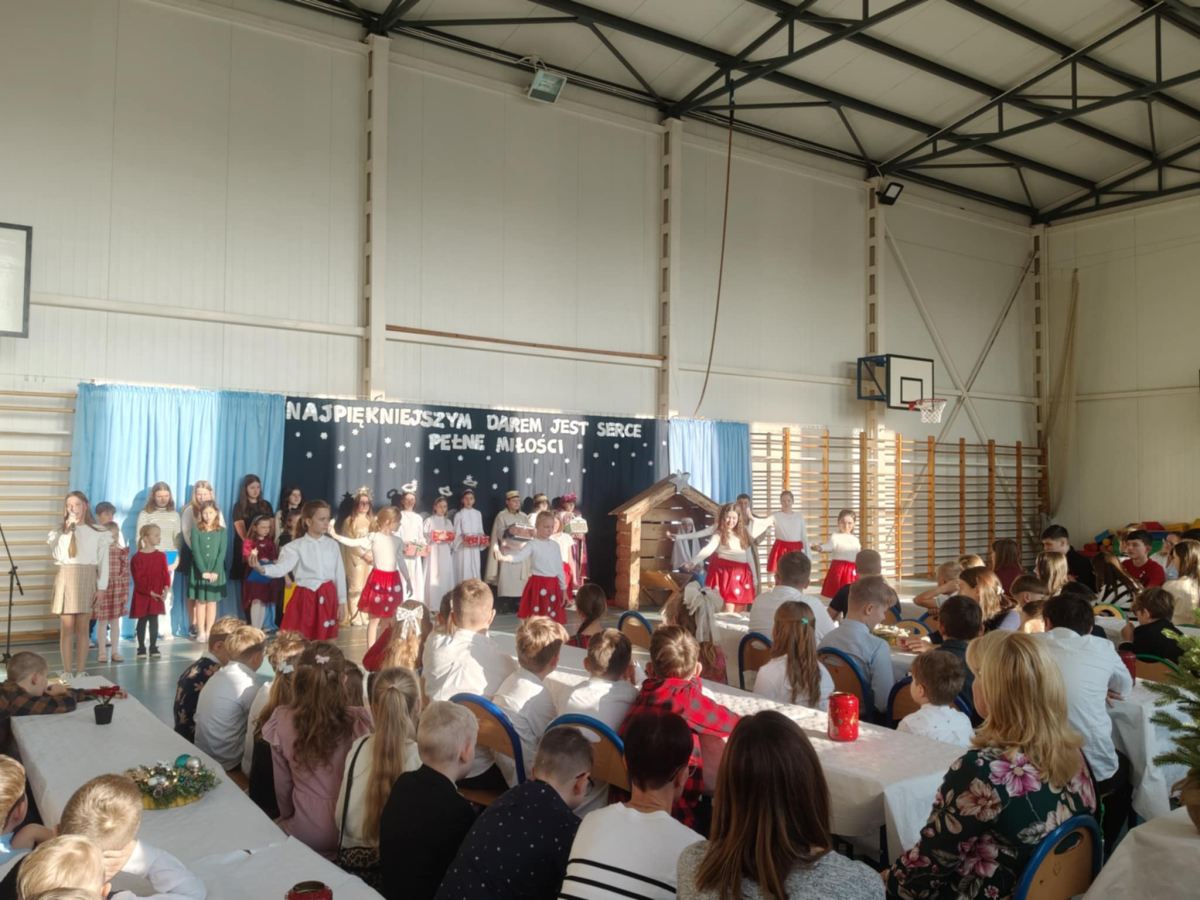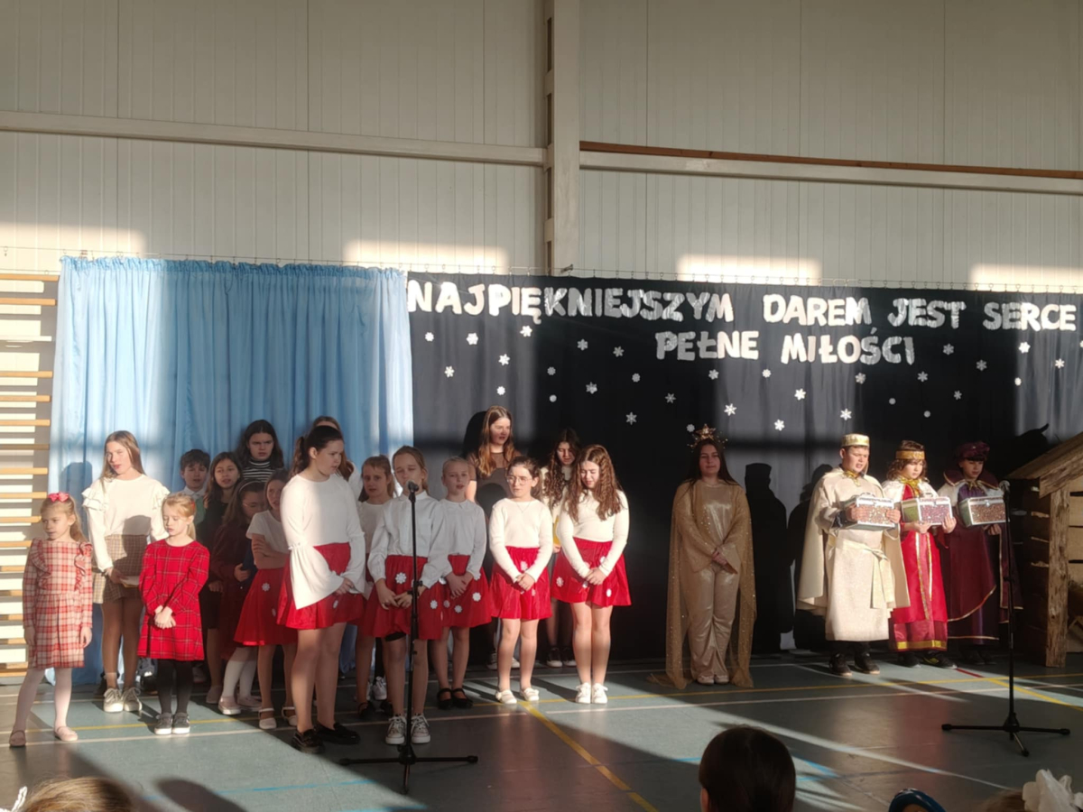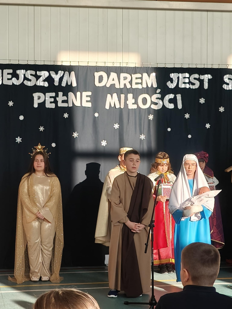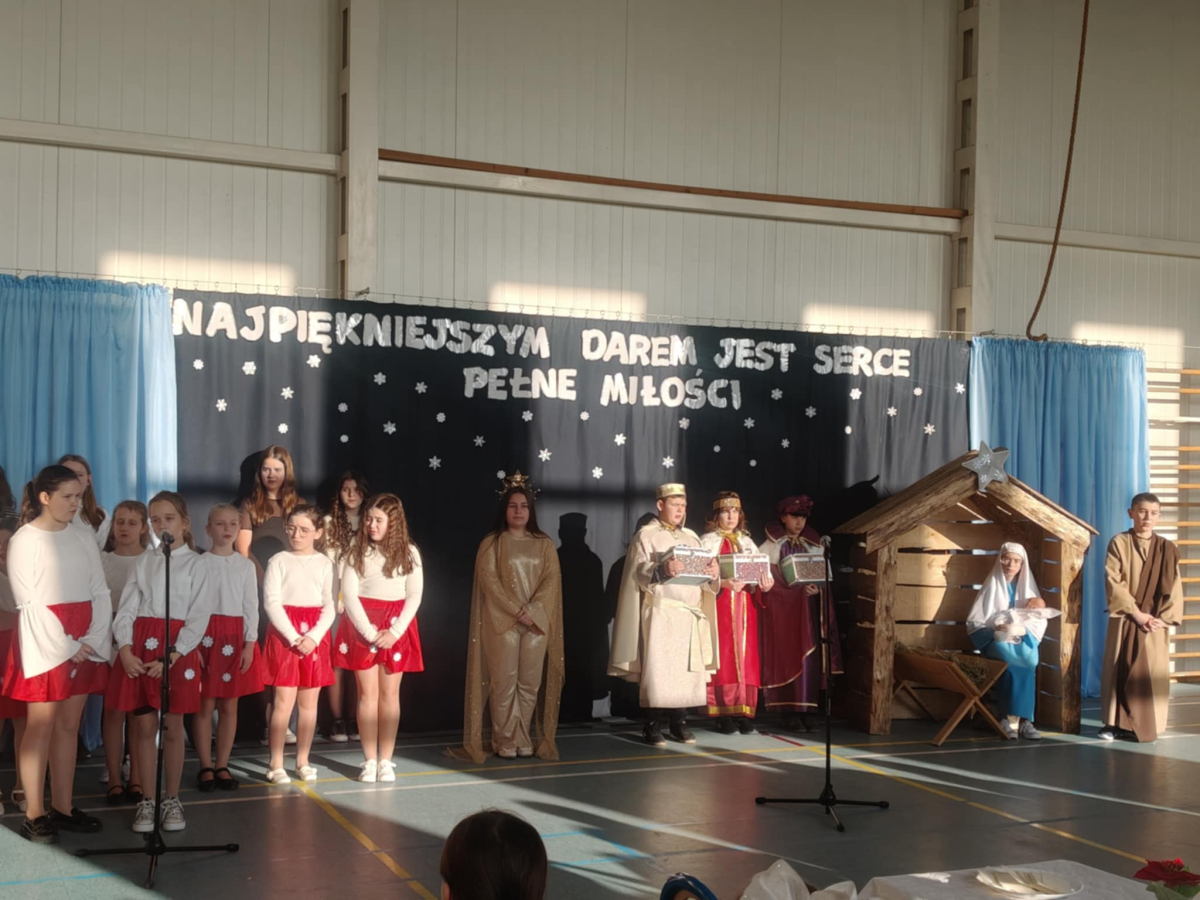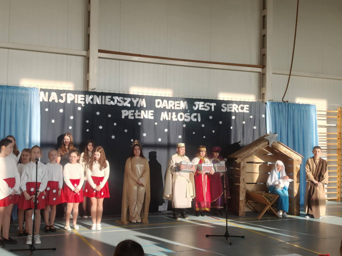 "Najpiękniejsze prezenty na Boże Narodzenie to dobre słowo, uśmiech i pomoc drugiemu człowiekowi". Jasełka szkolne z tym pięknym przesłaniem wprowadziły całą społeczność w świąteczny nastrój. Uczniowie zaprezentowali przedstawienie bożonarodzeniowe, pełne kolęd i wzruszających scen. Po jasełkach, przygotowanych przez p. Mariolę Wątrobę oraz p. Iwonę Nowak, odbyła się szkolna wigilia, podczas której wszyscy składali sobie życzenia i dzielili się opłatkiem. Był to czas radości, wspólnoty i kultywowania świątecznych tradycji.