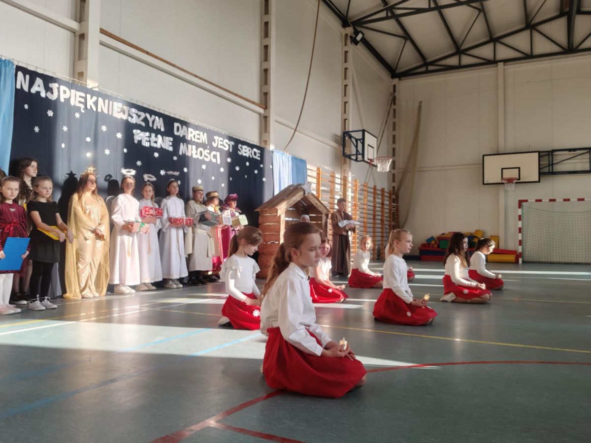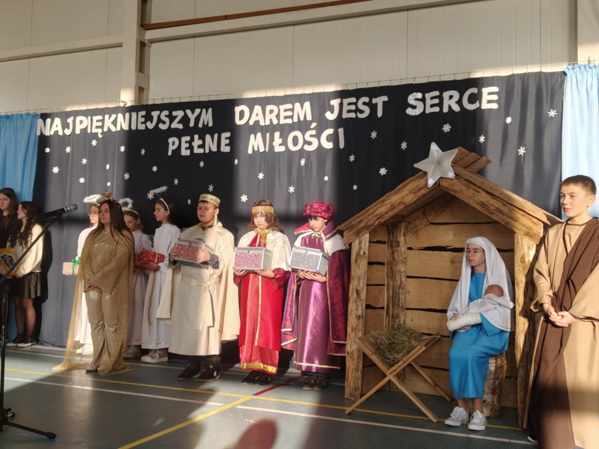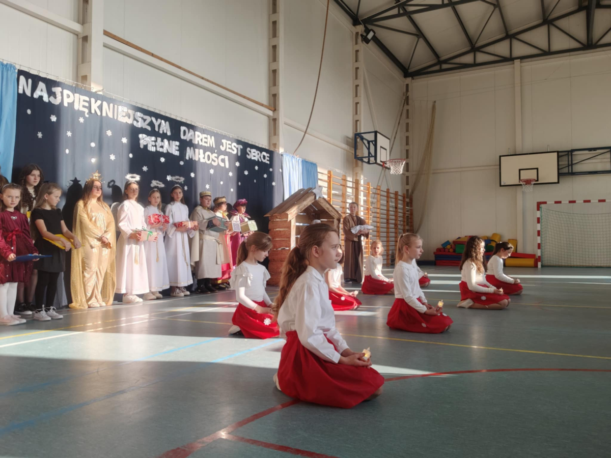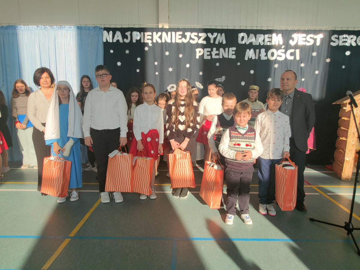 "Najpiękniejsze prezenty na Boże Narodzenie to dobre słowo, uśmiech i pomoc drugiemu człowiekowi". Jasełka szkolne z tym pięknym przesłaniem wprowadziły całą społeczność w świąteczny nastrój. Uczniowie zaprezentowali przedstawienie bożonarodzeniowe, pełne kolęd i wzruszających scen. Po jasełkach, przygotowanych przez p. Mariolę Wątrobę oraz p. Iwonę Nowak, odbyła się szkolna wigilia, podczas której wszyscy składali sobie życzenia i dzielili się opłatkiem. Był to czas radości, wspólnoty i kultywowania świątecznych tradycji.