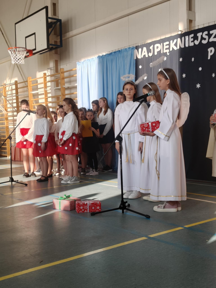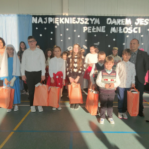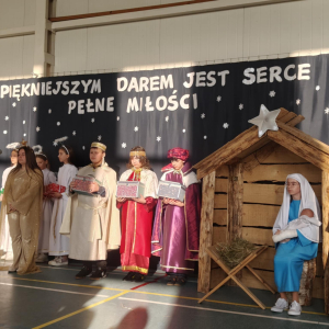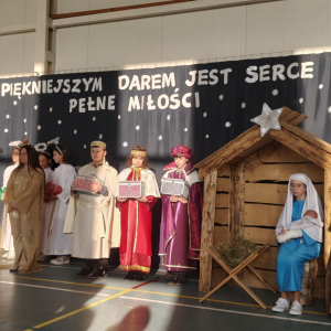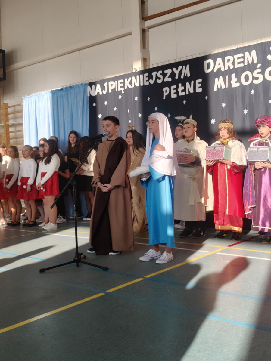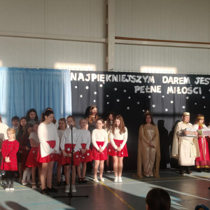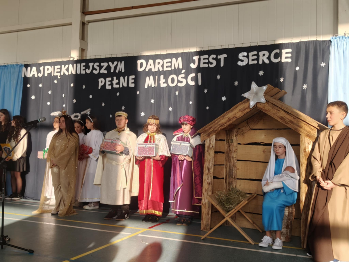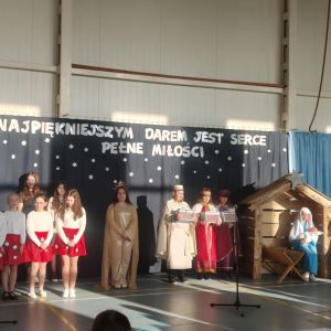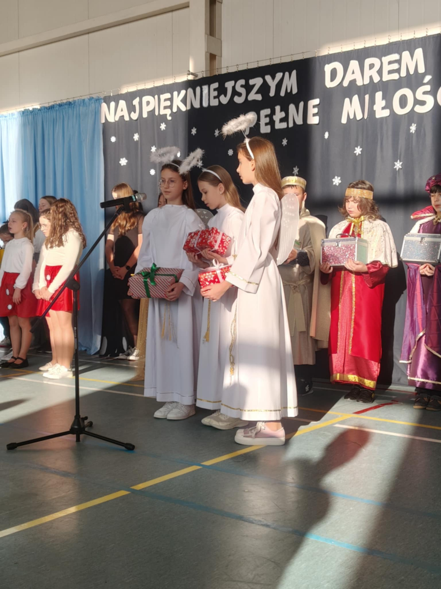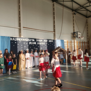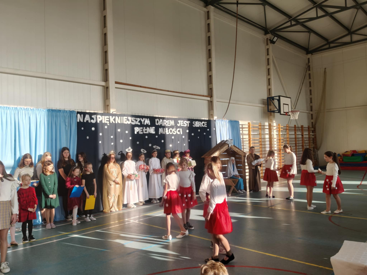 "Najpiękniejsze prezenty na Boże Narodzenie to dobre słowo, uśmiech i pomoc drugiemu człowiekowi". Jasełka szkolne z tym pięknym przesłaniem wprowadziły całą społeczność w świąteczny nastrój. Uczniowie zaprezentowali przedstawienie bożonarodzeniowe, pełne kolęd i wzruszających scen. Po jasełkach, przygotowanych przez p. Mariolę Wątrobę oraz p. Iwonę Nowak, odbyła się szkolna wigilia, podczas której wszyscy składali sobie życzenia i dzielili się opłatkiem. Był to czas radości, wspólnoty i kultywowania świątecznych tradycji.