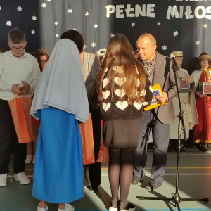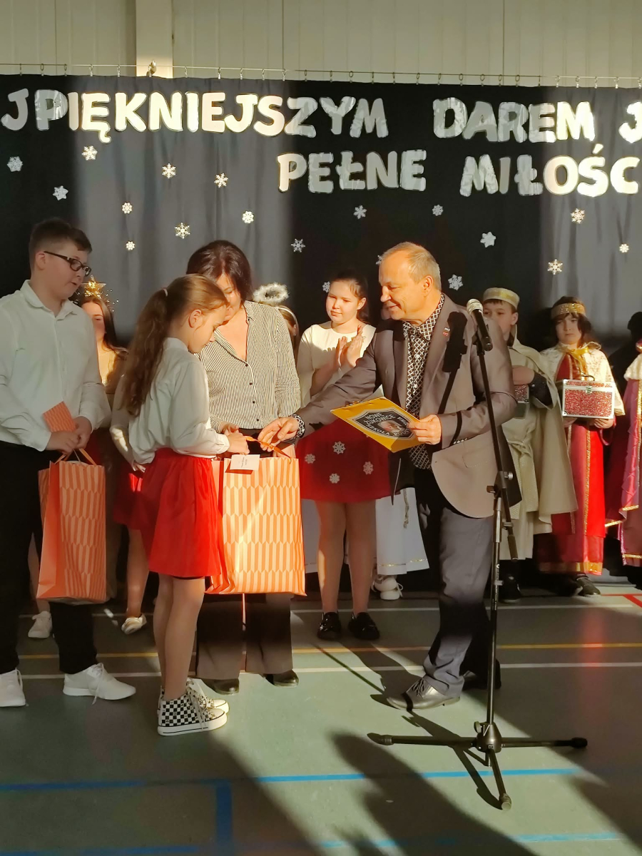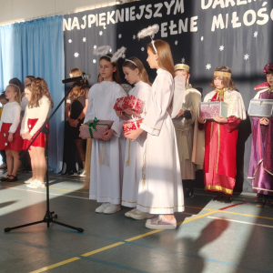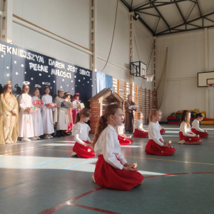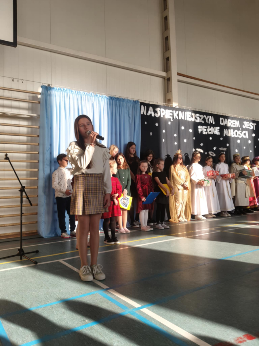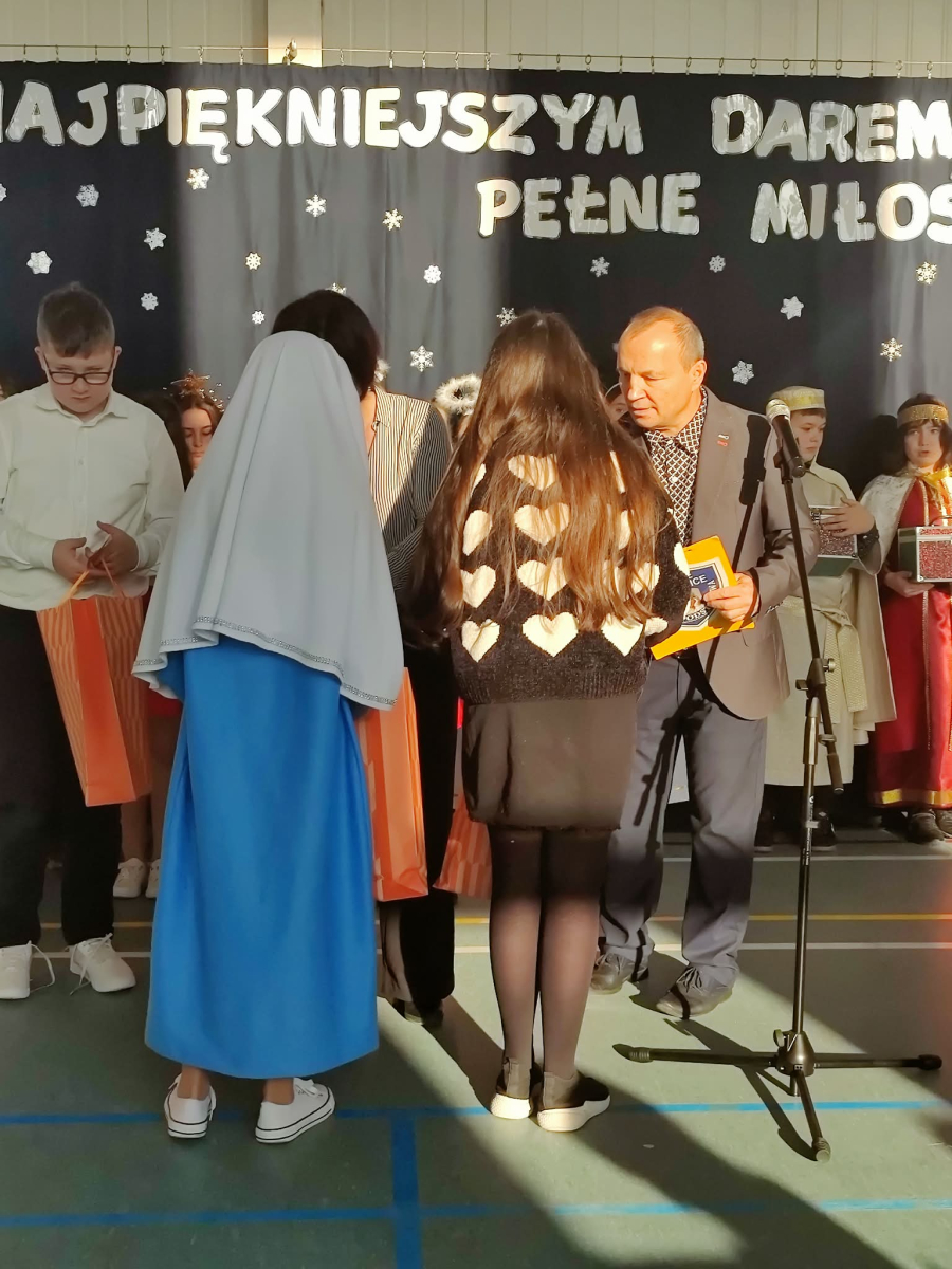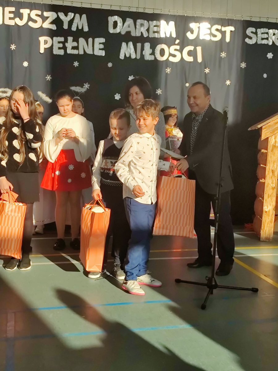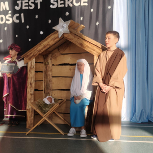 "Najpiękniejsze prezenty na Boże Narodzenie to dobre słowo, uśmiech i pomoc drugiemu człowiekowi". Jasełka szkolne z tym pięknym przesłaniem wprowadziły całą społeczność w świąteczny nastrój. Uczniowie zaprezentowali przedstawienie bożonarodzeniowe, pełne kolęd i wzruszających scen. Po jasełkach, przygotowanych przez p. Mariolę Wątrobę oraz p. Iwonę Nowak, odbyła się szkolna wigilia, podczas której wszyscy składali sobie życzenia i dzielili się opłatkiem. Był to czas radości, wspólnoty i kultywowania świątecznych tradycji.