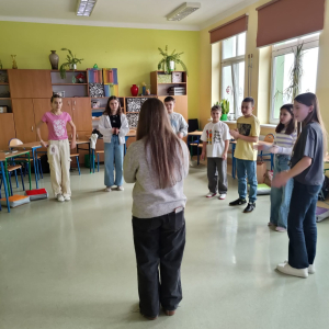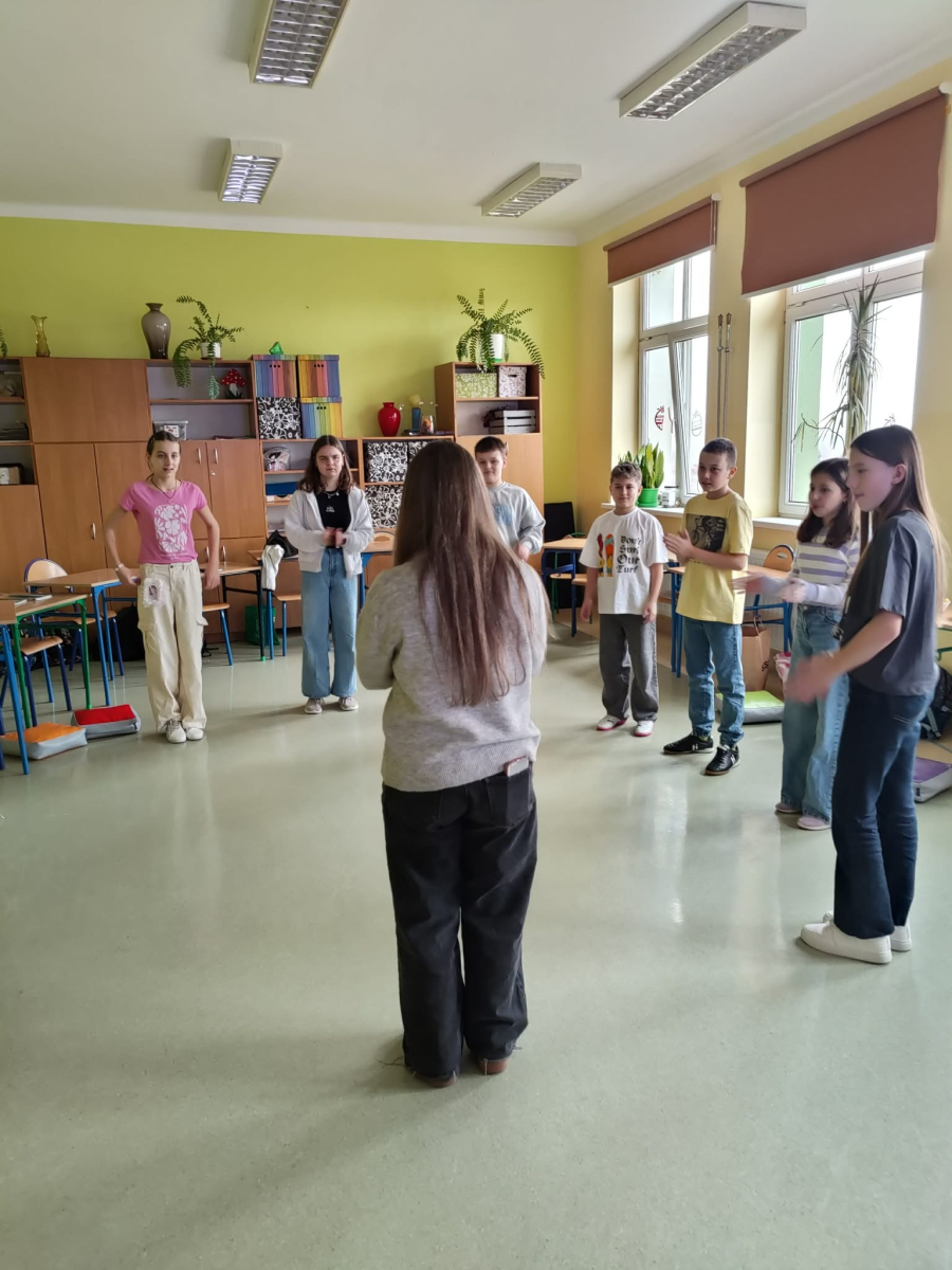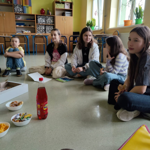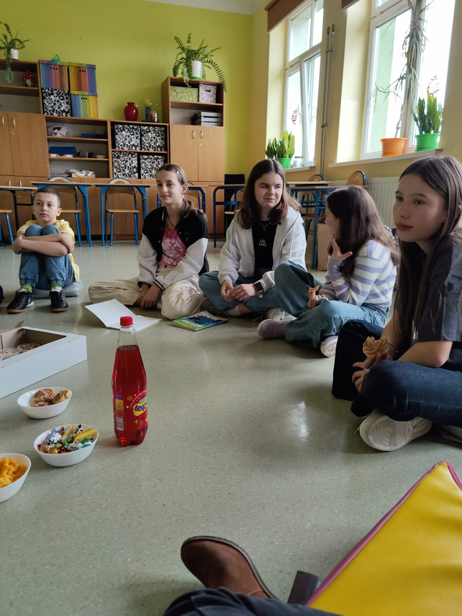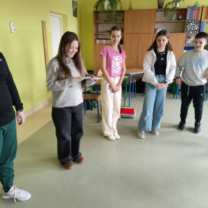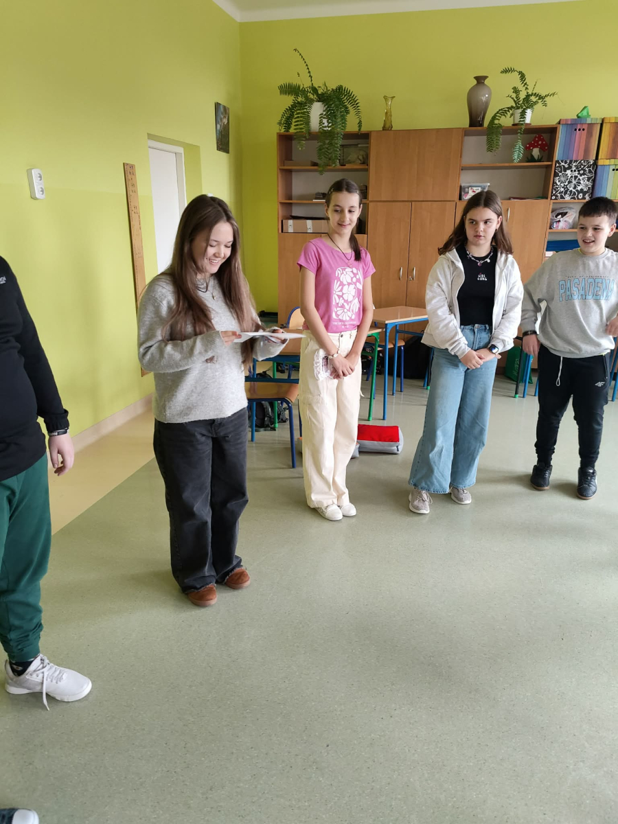 W ramach projektu "Meet me" zaprosiliśmy do naszej społeczności szkolnej dziewczynkę z Wielkiej Brytanii - Oliwię. Uczniowie klasy szóstej mieli możliwość nie tylko przeprowadzenia z nią wywiadu, ale także szlifowania swoich umiejętności językowych z native speakerem. Wspólnie nauczyliśmy się tańca popularnego wśród dzieci w brytyjskich szkołach i mogliśmy sami również nauczyć Oliwię naszej popularnej zabawy. Uczniowie wybrali "taniec kaczuszki". Rodzice przygotowali dla wszystkich poczęstunek, drobny upominek od klasy oraz kartkę z podziękowaniami, za co serdecznie dziękujemy trójce klasowej. Oliwia wyraziła chęć dalszej współpracy z klasą i pozostania w kontakcie mailowym, co pozwoli nam w dalszym ciągu ulepszać nasze umiejętności językowe. Dzieci bardzo chętnie zadawały pytania, pokonując tym samym swoje bariery językowe. Mamy nadzieję na dalsze spotkania nie tylko z Oliwią, ale również z innymi osobami z różnych krajów, kultur i kontynentów.