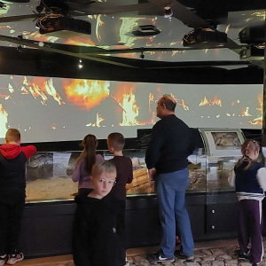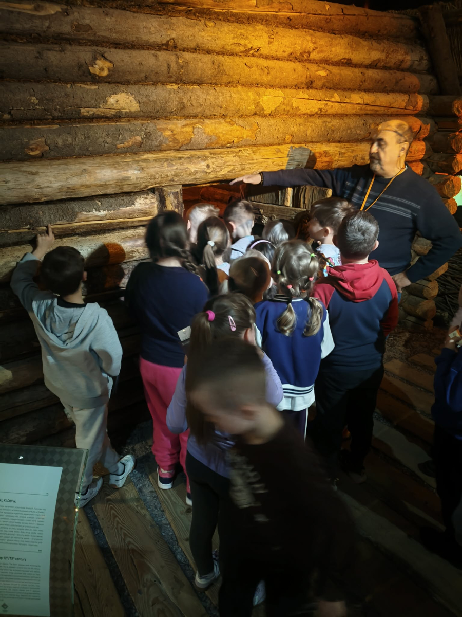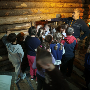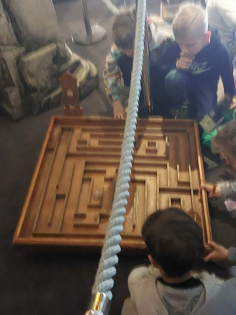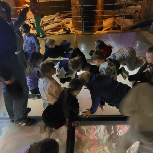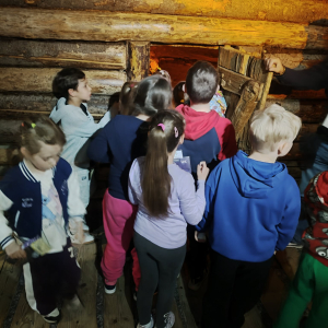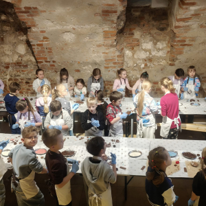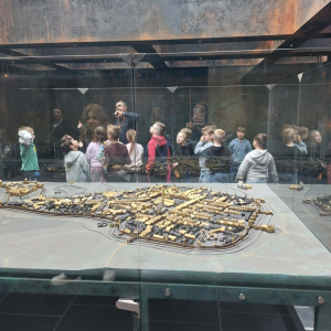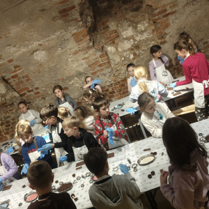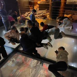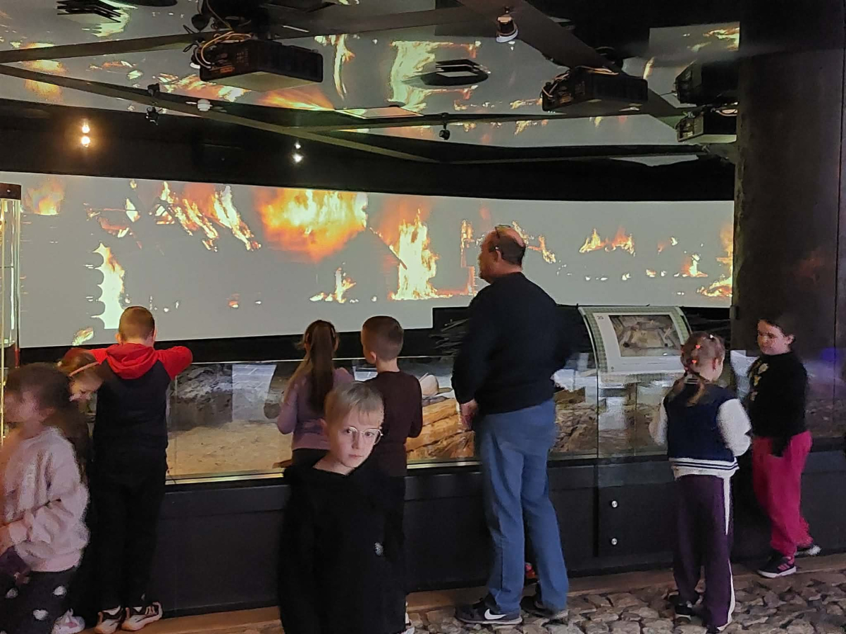 Kolejnym punktem programu był Rynk Główny. Punktualnie o pełnej godzinie zadarliśmy głowy wysoko, by wysłuchać hejnału płynącego z wieży Kościoła Mariackiego i pomachać do hejnalisty. Następnie zeszliśmy pod ziemię, by odkryć tajemnice dawnego miasta w multimedialnym Muzeum Podziemia Rynku. Nowoczesna ekspozycja zrobiła na uczniach ogromne wrażenie – mogliśmy zobaczyć, jak wyglądał Kraków setki lat temu!