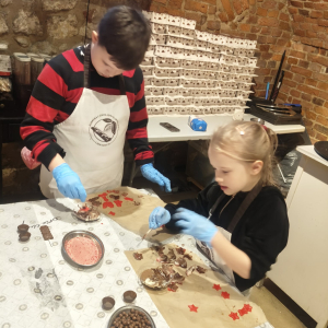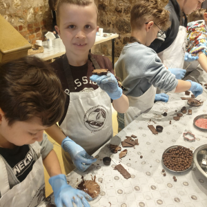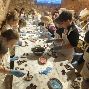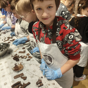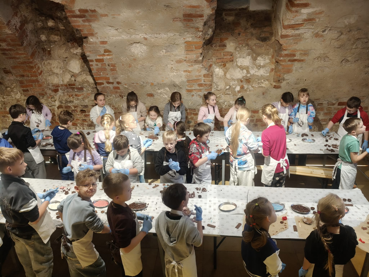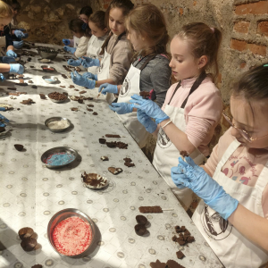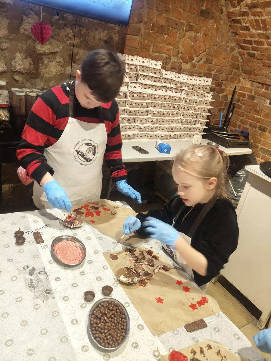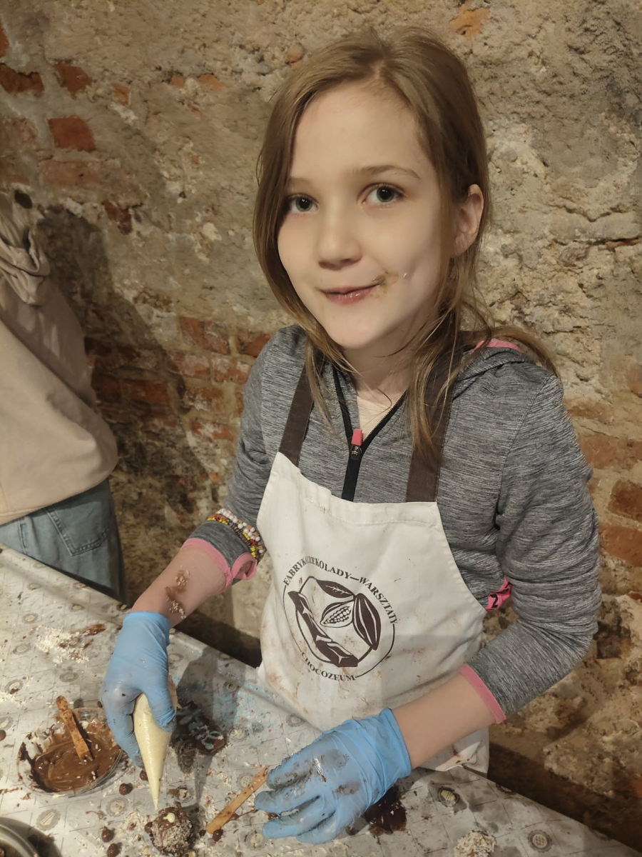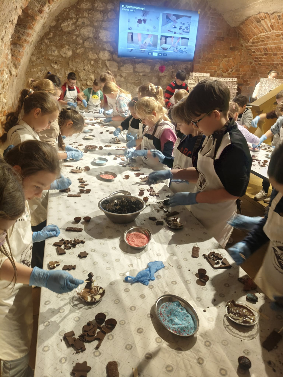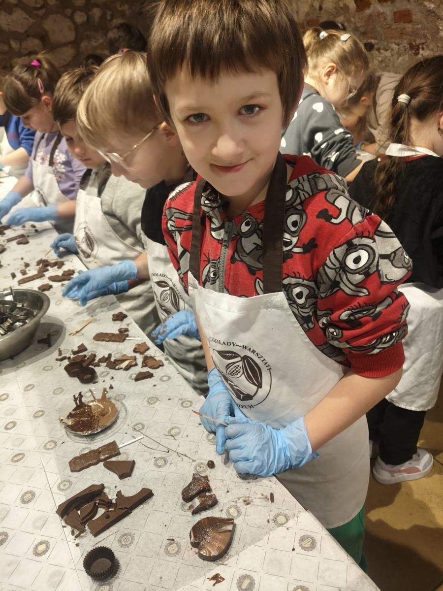 Naszą przygodę rozpoczęliśmy bardzo słodko - odwiedziliśmy Manufakturę Krakowskiej Czekolady. Każdy uczeń zamienił się w małego cukiernika i podczas warsztatów własnoręcznie przygotował swoje autorskie praliny. Zapach czekolady i radość z tworzenia własnych słodkości z pewnością na długo zostaną w naszej pamięci